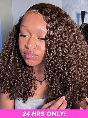 Mocha Mousse Color Burmese Curly Pre-Cut Lace Glueless Wig With Drawstring