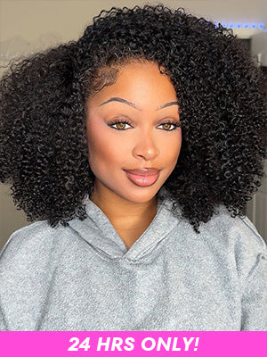 Pre-Bleached Kinky Curly Hair Pre-Cut HD Lace Wear Go Glueless Wig